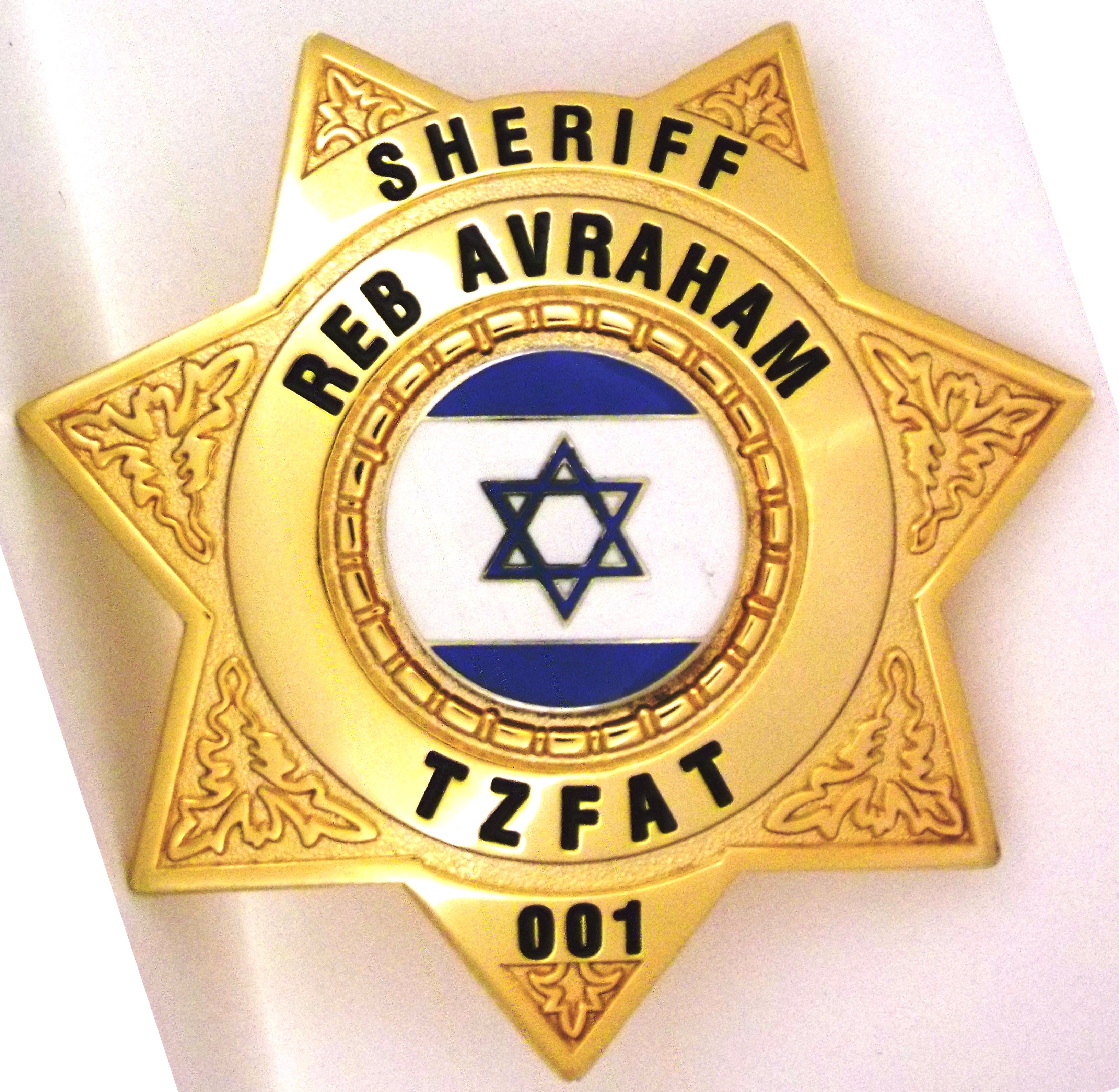 badge 2Once Avraham acquired the uniform and looked quite official, he set in motion his next level of advancing his Sheriff identity. He went online and designed himself a badge and had business cards made, with his name and identity as the Sheriff of Tzfat. It is quite beautiful and very real looking and very official looking. In order to have the badge made, the company in America requested identification, so he went ahead and faxed the new business card along with his police I.D. to the online company. I watched the goings on in stunned and shocked amazement. I was a doubting Thomas, so to speak, because I still had that people pleasing, what will people think sickness and it precluded a belief that my husband could actually become the Sheriff of Tzfat, even if it was for pretend. I had not come to the realization of what my husband had come to know, that “We are led by our deepest desires, as long as we have the persistence and patience to make them happen” and we can’t be afraid of looking like a fool in other people’s eyes even if it happens to be your spouse. He wanted to be the sheriff of Tzfat and he somehow knew that the police would see it as an amazing guy thing and they would receive it well and enjoy it too.